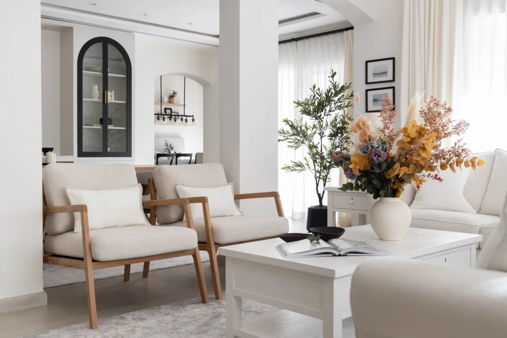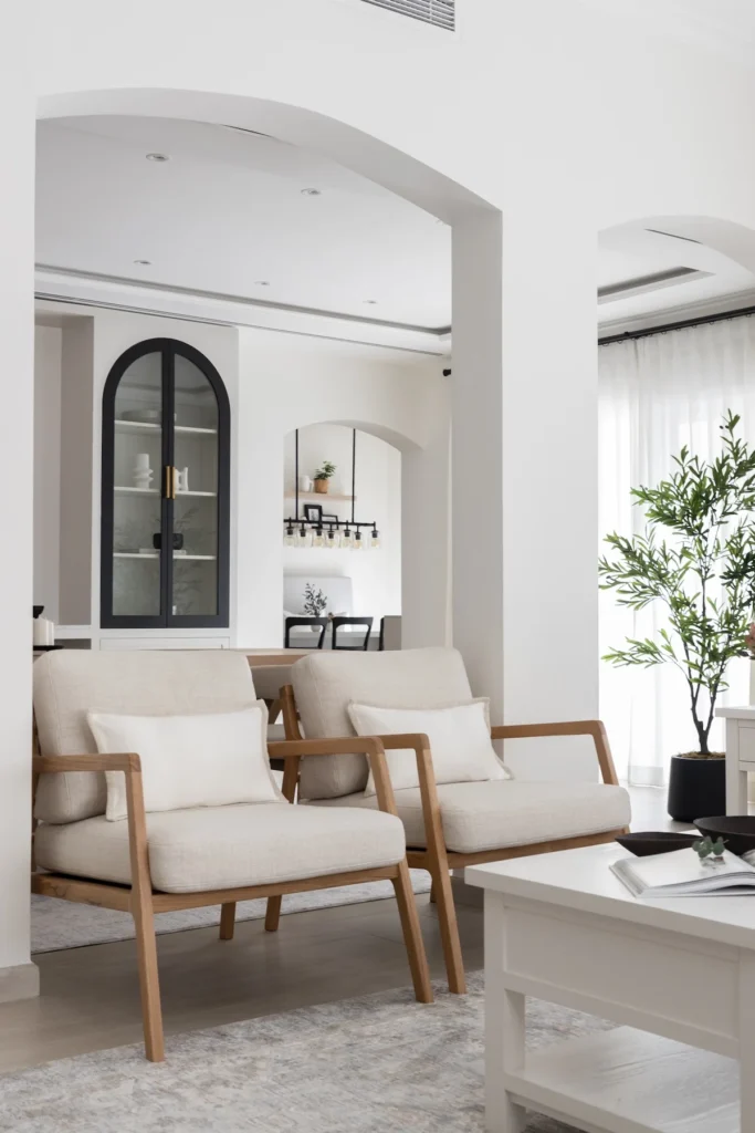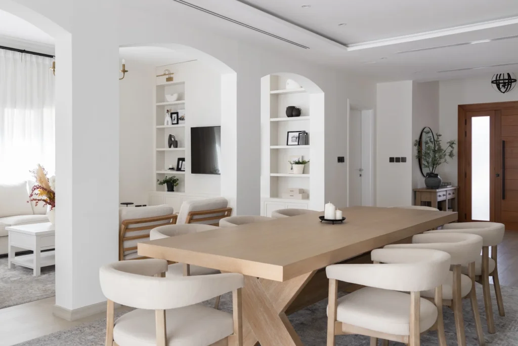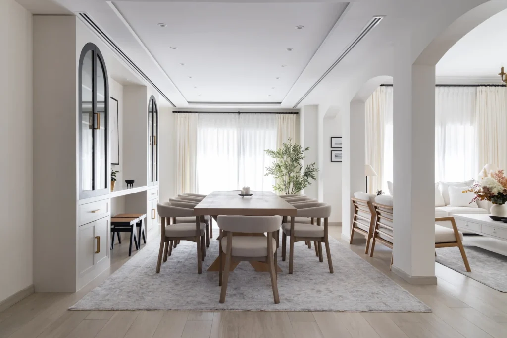 This 4,200 sq.ft five-bedroom home in the Meadows Community of Dubai, serves as the anthesis with its creamy linens and a generous use of wooden accents.